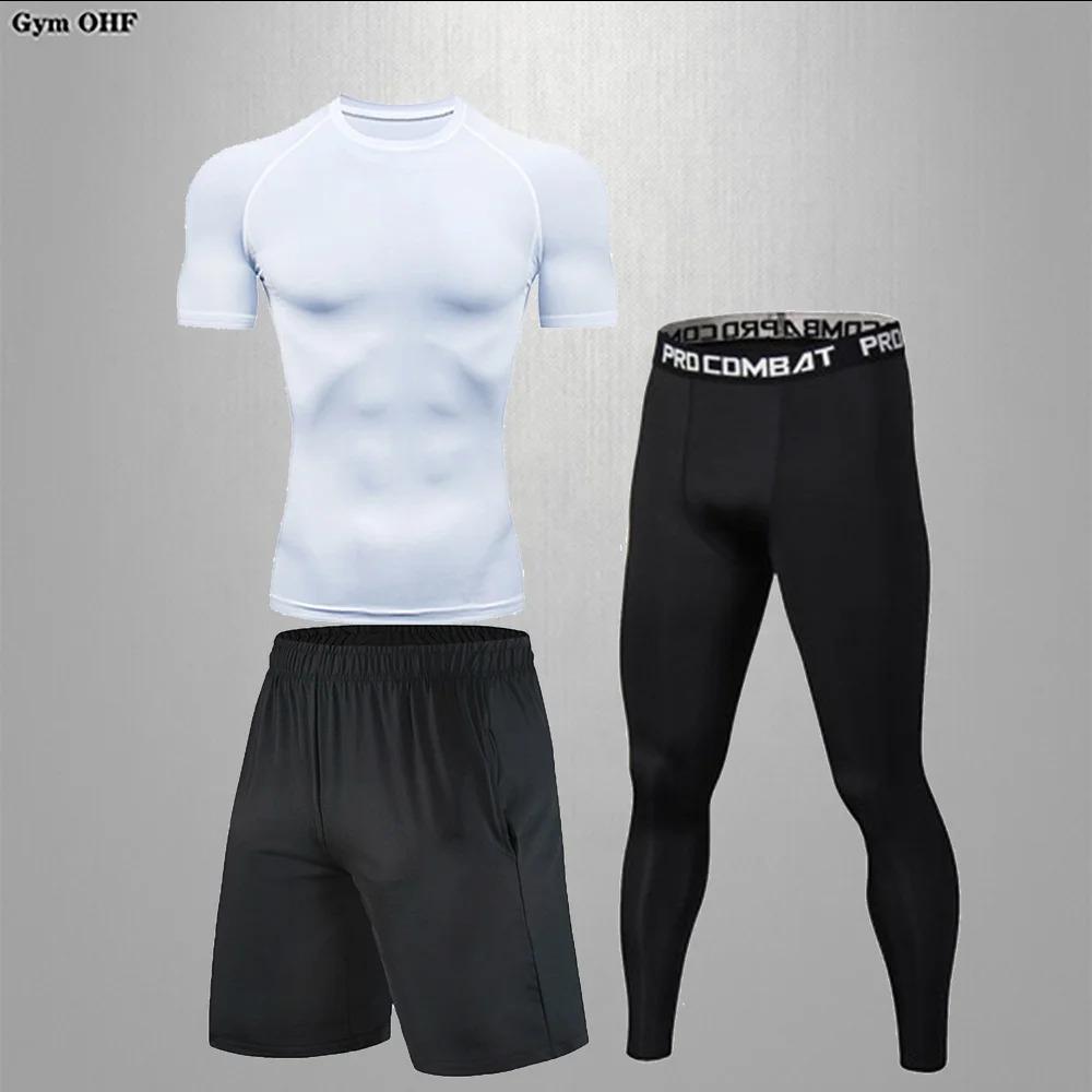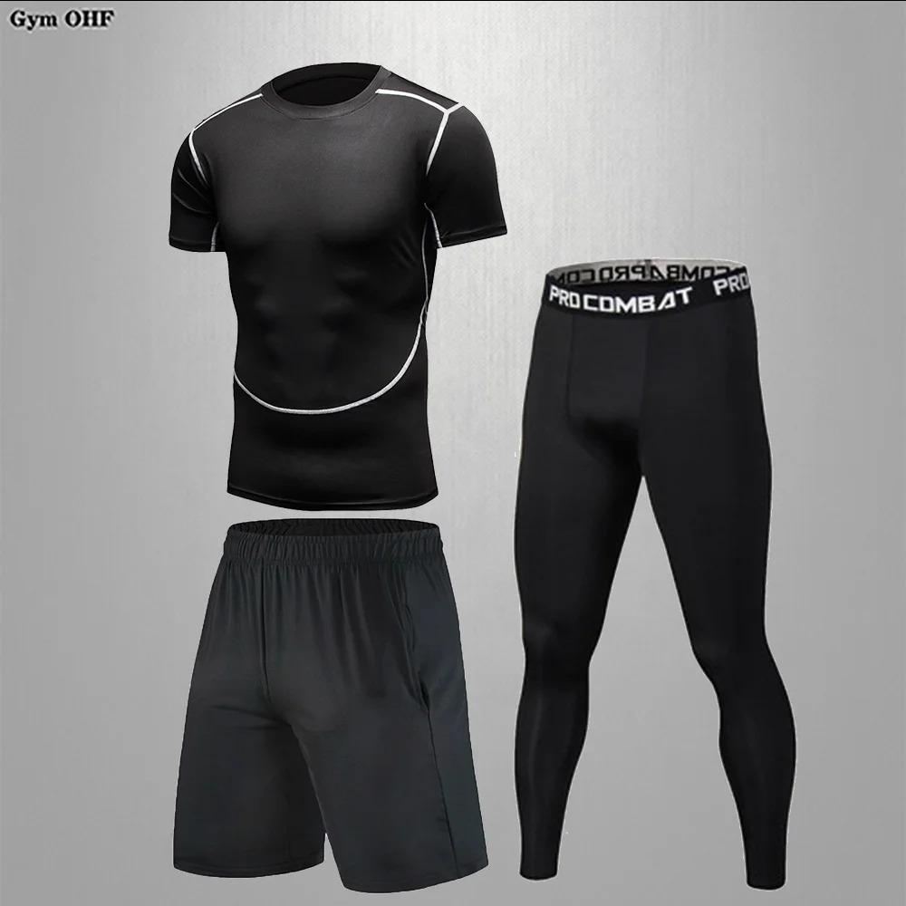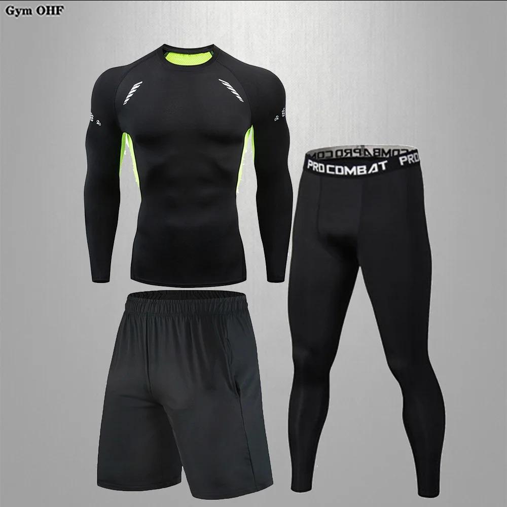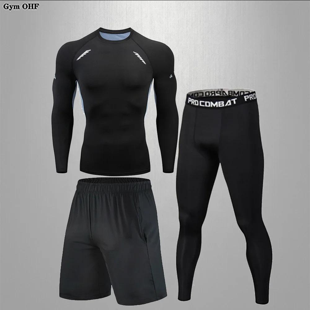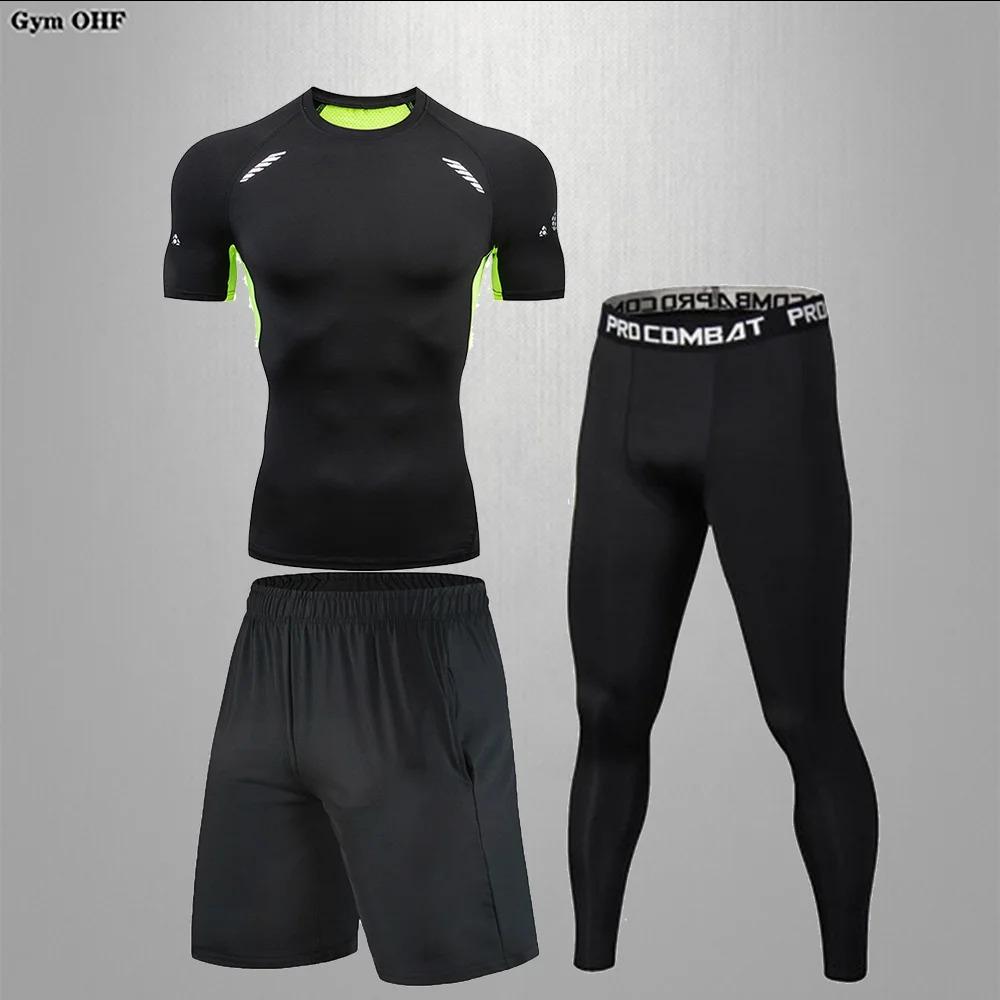 بدلة جري سريعة الجفاف للرجال ، طقم مكون من 3 قطع ، تي شيرت رياضي ورجل ، قميص ضغط رياضي خارجي ، Rashguard