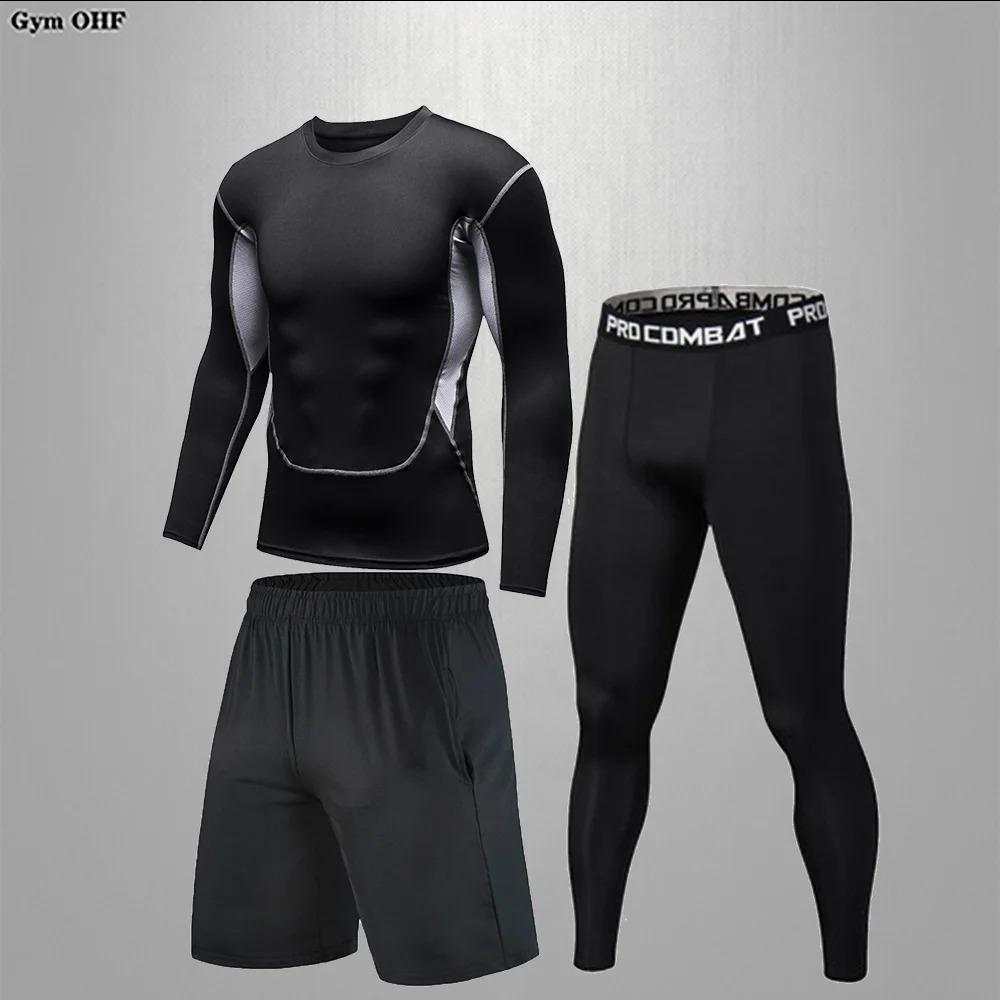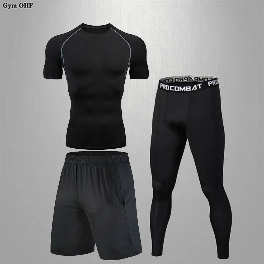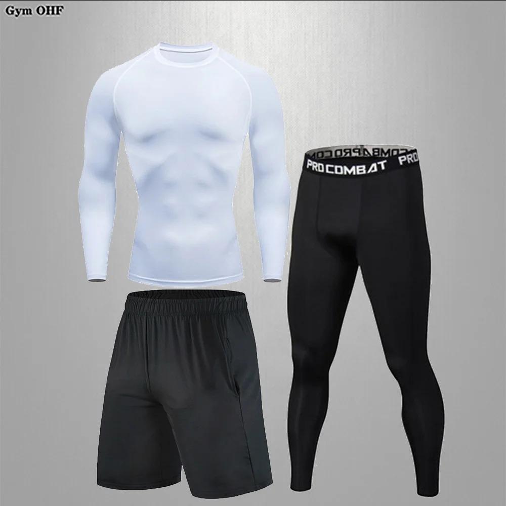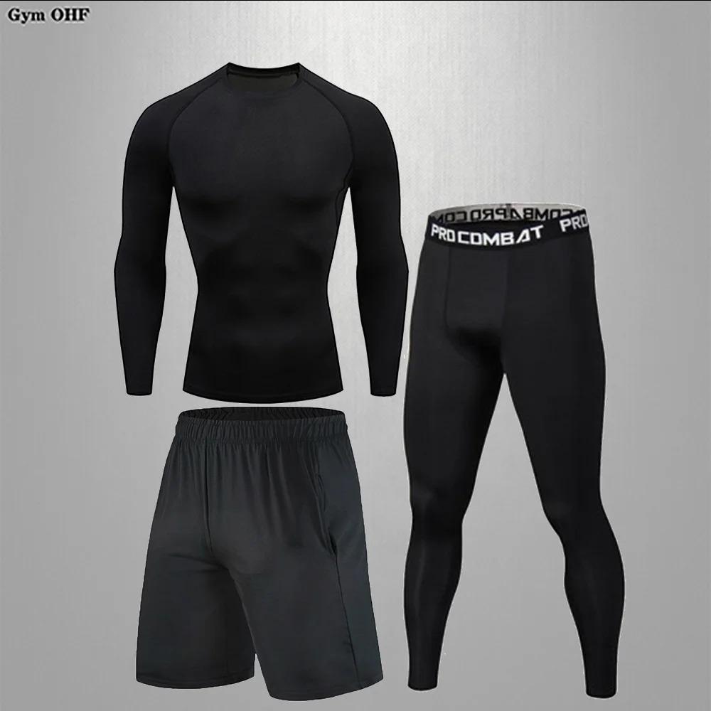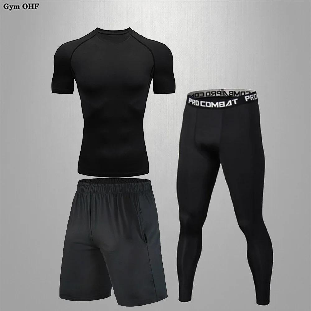 بدلة جري سريعة الجفاف للرجال ، طقم مكون من 3 قطع ، تي شيرت رياضي ورجل ، قميص ضغط رياضي خارجي ، Rashguard