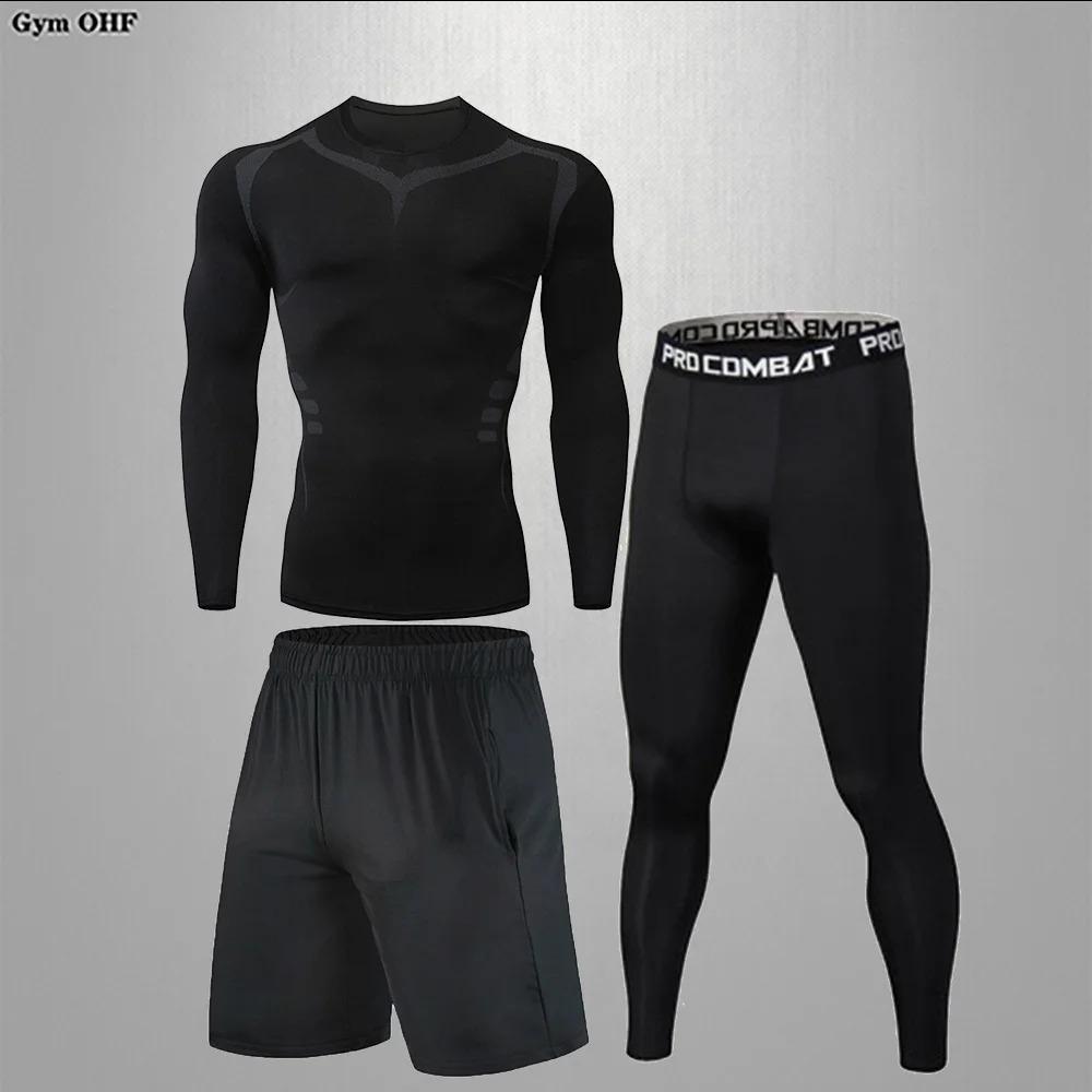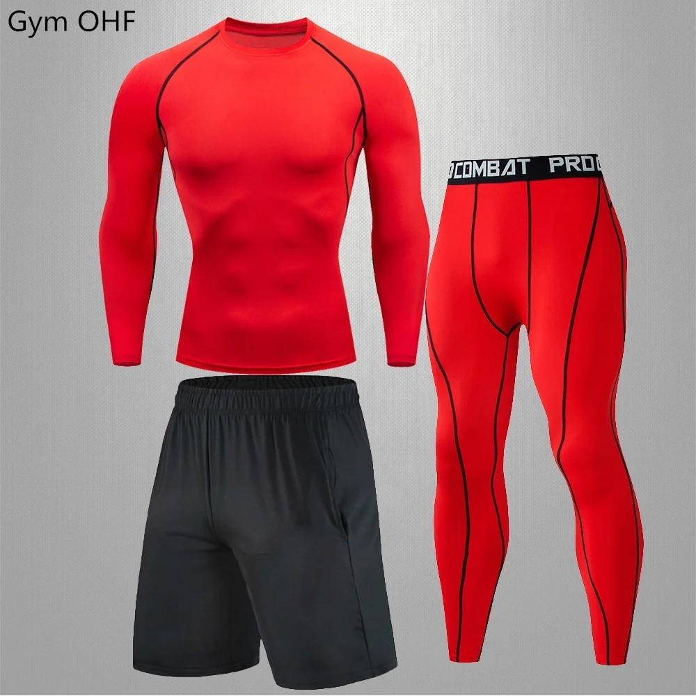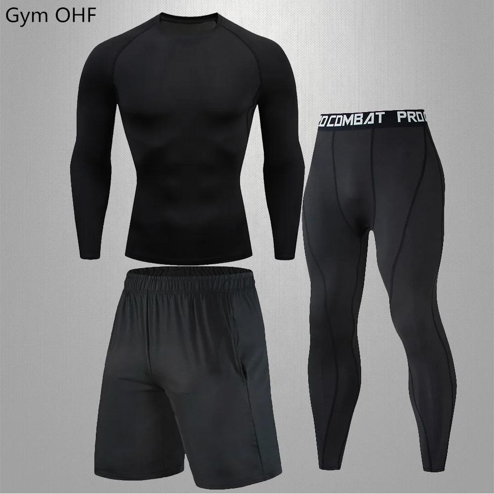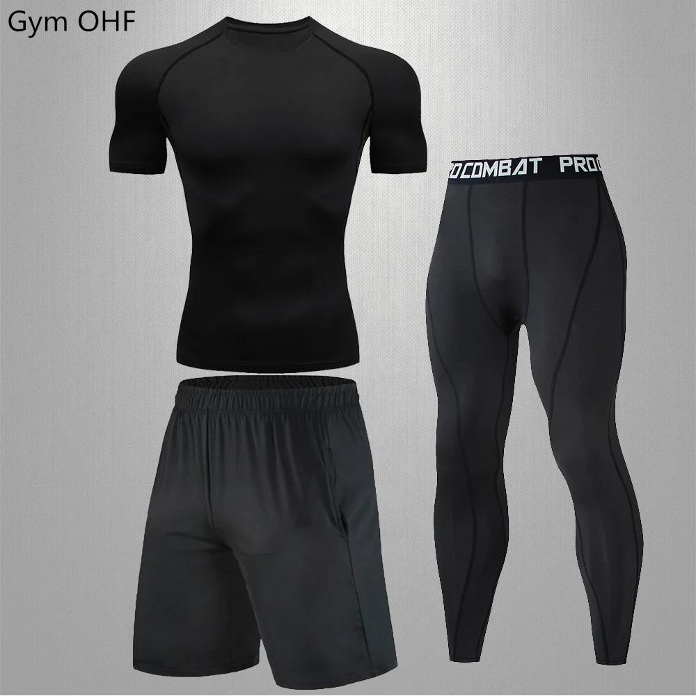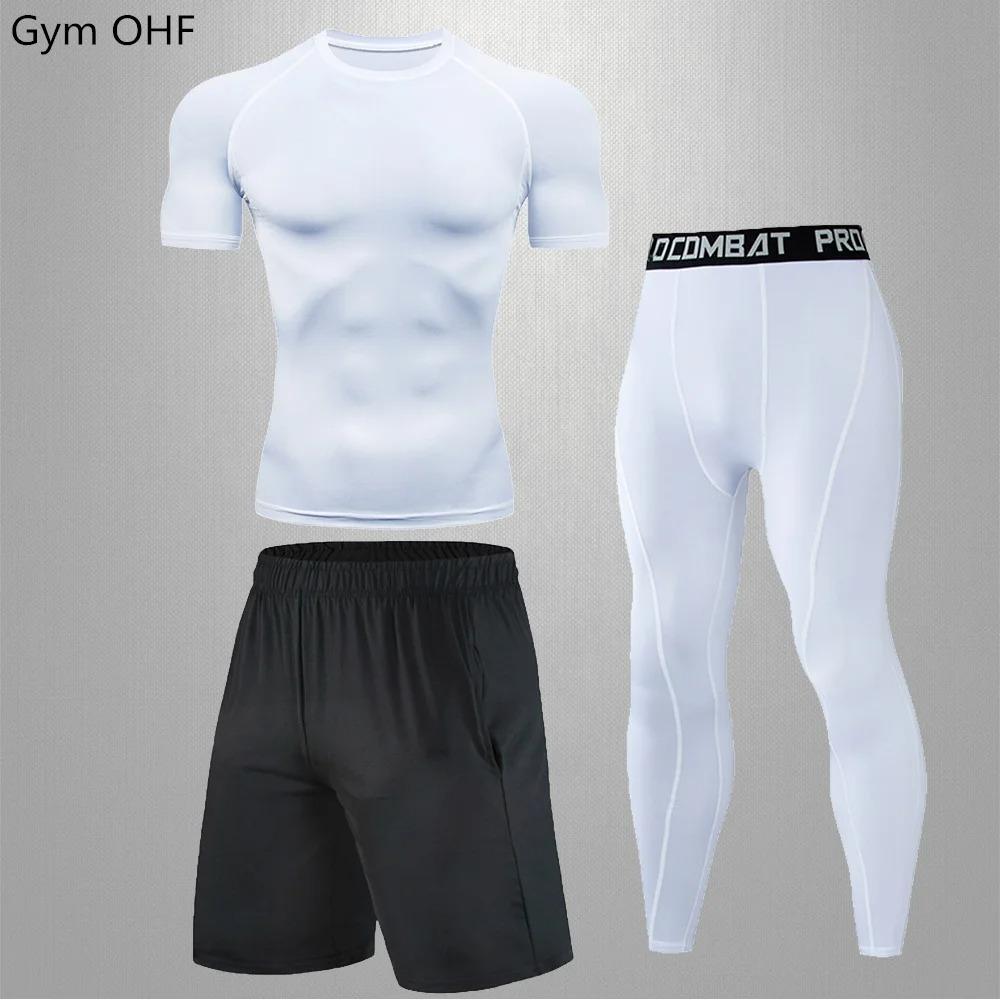 بدلة جري سريعة الجفاف للرجال ، طقم مكون من 3 قطع ، تي شيرت رياضي ورجل ، قميص ضغط رياضي خارجي ، Rashguard
