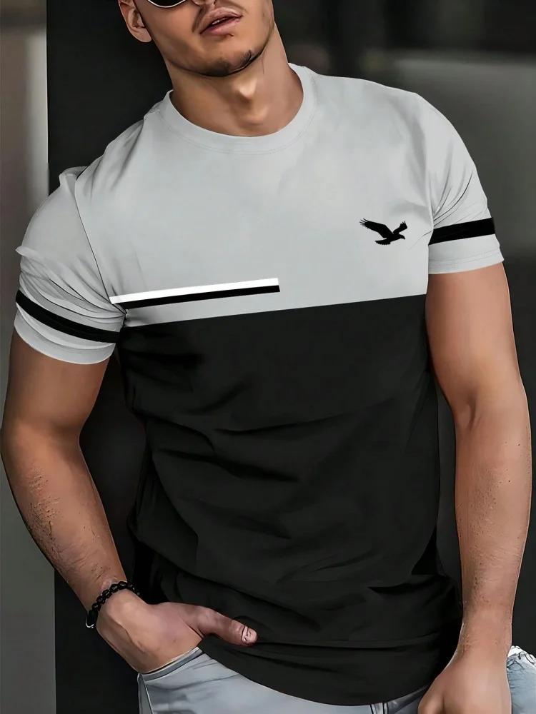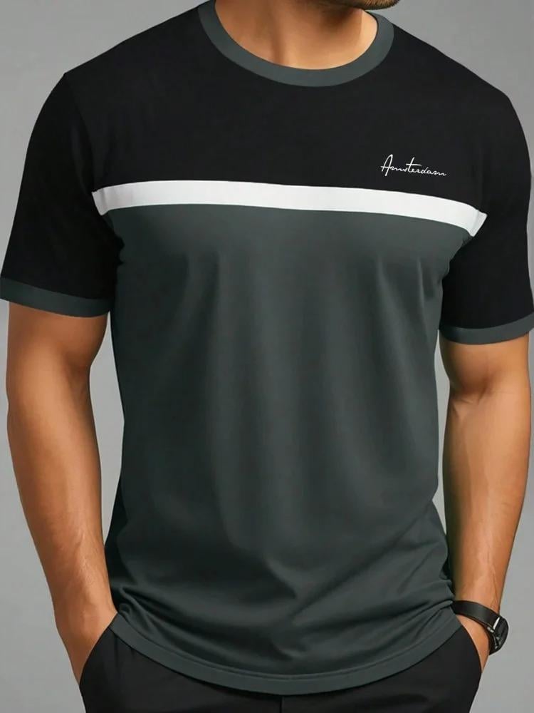 تي شيرت رجالي صيفي كاجوال رياضي فضفاض كبير الحجم بنمط حروف بسيط مطبوع برقبة دائرية وأكمام قصيرة
