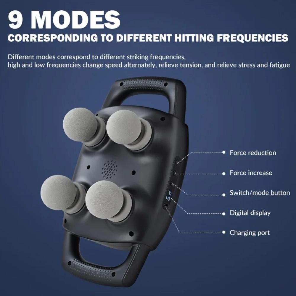 مسدس تدليك الأنسجة العميقة، 4 رؤوس، 9 أوضاع وسرعات، USB 1800 مللي أمبير، شاشة ذكية - مثالية للاسترخاء في المنزل أو النوم أو المكتب.